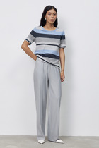 Брюки прямого силуэта из меланжевой костюмной ткани. Пояс притачной с эластичной резиной.