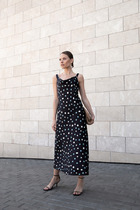 Платье из эластичного полотна прилегающего силуэта с разрезом в боковом шве. Длинный рукав-реглан. Линия плеча и линия горловины с эластичной резиной.