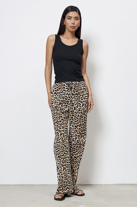 Брюки из хлопковой ткани прямого силуэта. Пояс с эластичной резиной и кулиской, в боковых швах карманы.