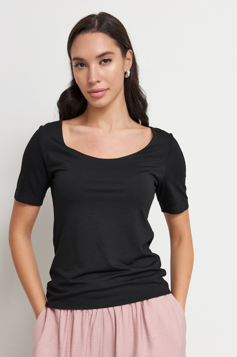 Двухслойный джемпер полуприлегающего силуэта из вискозного эластичного полотна. Втачной короткий рукав, круглый вырез горловины. Благодаря двухслойности переда и спинки изделие скрывает мелкие недочёты фигуры и делает силуэт более ровным. Актуальный джемпер придаст совершено особое звучание и строгим классическим брюкам, и нарядной юбке и даже спортивному костюму. Его легко применять для создания разных образов.