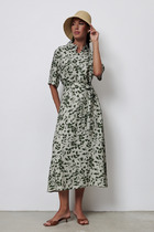 Рубашка свободного силуэта из вискозной ткани с застёжкой на пуговицы. Низ изделия асимметричной длины (спинка удлинена относительно переда) с закруглениями по бокам и разрезами. Рубашечный рукав на манжете с застёжкой на пуговицы. Вырез горловины обработан отложным воротником на стойке. На задней части изделия выполнена кокетка с небольшой складкой. Достоинство этой модели в способности скрыть некоторые недостатки фигуры. Её можно сочетать как с брюками, так и с джинсами.