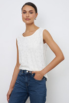 Топ из фактурного эластичного полотна полуприлегающего силуэта. Линия горловины и линия проймы окантованы эластичной бейкой.