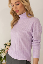 Джемпер свободного силуэта со спущенной линией плеча и длинным рукавом. Линия горловины оформлена высокой стойкой. Изделие выполнено из мягкой пряжи.