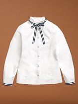 Школьная блузка для девочки.Актуального дизайна. Выполнена из качественного материала.Модель с длинными рукавами, воротником стойкой. Прекрасный вариант для школьных будней, так и для торжественных случаев.Материал: Трикотажное полотно рибана.Состав: 95% хб,5%эл.