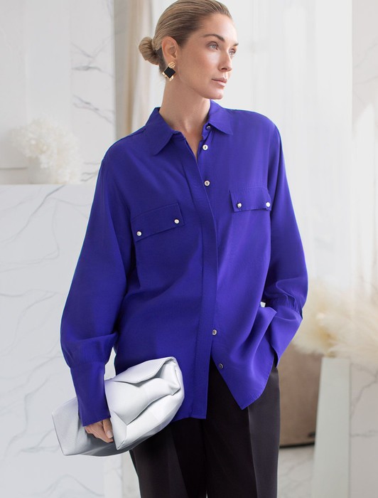 Состав: 55%Вис 45%Лиоцелл (Вис) Параметры модели на первом фото: Рост 172, бюст 88, талия 64, бедра 88Блузка с имитацией карманов и удлиненными манжетами выполнена из премиальной вискозы и лиоцелла. На спинке изделия фирменный логотип бренда. Имитация карманов позволяет этому элементу выглядеть аккуратно без складок и фалд, которые вероятны на такой пластичной ткани.Застежка на золотистые пуговицы. Приятная на ощупь ткань охлаждает кожу в жаркую погоду. Отлично впишется в нестрогий офисный дресс-код или в расслабленном повседневном образе с джинсами.