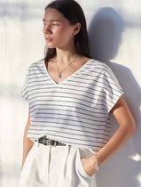 Футболка в полоску с V-вырезом и цельнокроеным рукавом из премиального хлопка