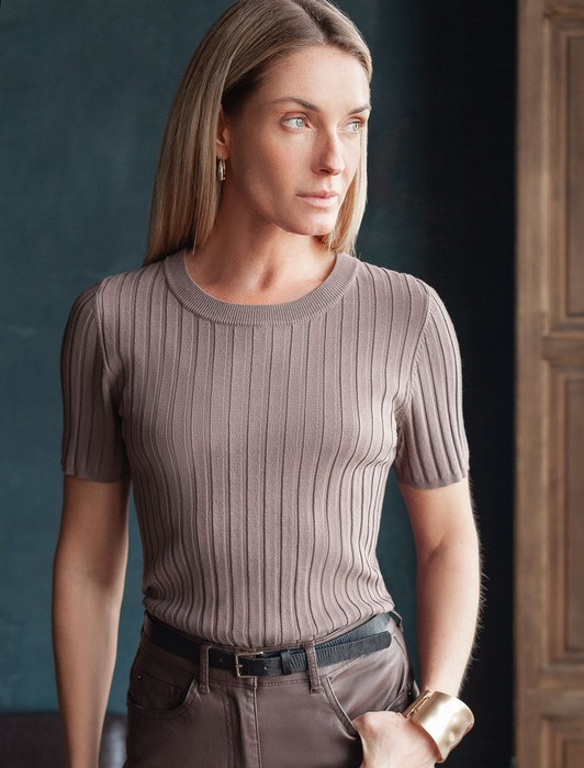Состав: 83%Вис 17%ПА Плотность: 12 GG Параметры модели на первом фото: Рост 170, бюст 83, талия 64, бедра 88 Размер товара на первом фото: 42Джемпер тонкой вязки из вискозы с нейлоном. Модель с круглым вырезом прилегающего силуэта. Мягкая очень приятная к коже пряжа хорошо держит форму и гарантирует комфорт во время носки в течение всего дня. Изделие дополнено фирменным металлическим логотипом бренда.