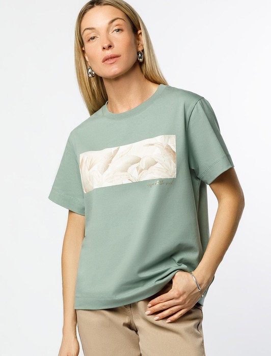 Состав: 92%Хлопок 8%ПУ Плотность: 170 Г/м2Перевод принта: Music of the wind - музыка ветра. Футболка выполнена из премиального хлопка с эластаном. Авторский принт нанесен красками с устойчивым покрытием. Модель среднего объема легко впишется в повседневные аутфиты и добавит акцента в образы. Эластичный материал гарантирует комфорт и формоустойчивость. Изделие дополнено металлическим логотипом бренда.