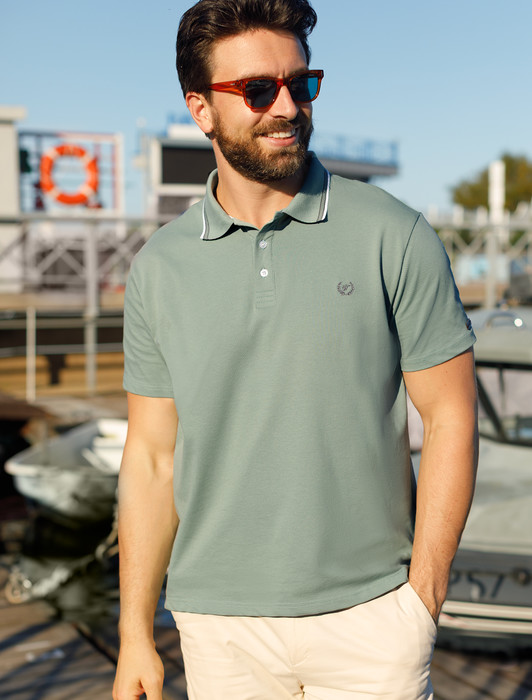 Состав: 92%Хлопок 8%ПУ Параметры модели на первом фото: Рост 190, бюст 108, талия 87, бедра 104 Размер товара на первом фото: 54Футболка-поло выполнена из фактурного трикотажа. Модель с прямого кроя с небольшими разрезами по бокам дополнена вязаным воротником с контрастными пуговицами в тон тонкой полосы и вышитым логотипом бренда. Премиальный хлопковый трикотаж гарантирует комфорт и износостойкость. На рукаве брендированная нашивка из эко-кожи.