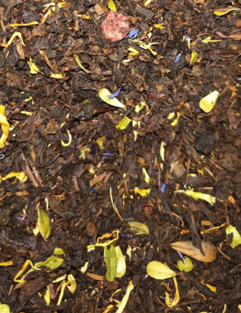 Индийский черный чай, листья смородины, малина, лепестки василька, лесные ягоды.