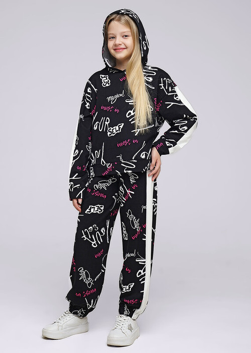 Стильная модель брюк из футера разнообразит повседневные луки. Контрастные лампасы подчёркивают актуальную тему спорта и стритстайла. Низ оформлен резинкой, пояс для комфортной посадки дополнен резинкой и внутренним кипером для регулировки.