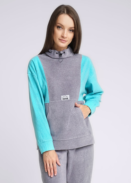 Совместные покупки Сургут Женская одежда Толстовки — 21.04 Clever Худи женское CLE LH13-103/2 бирюзовый/серый