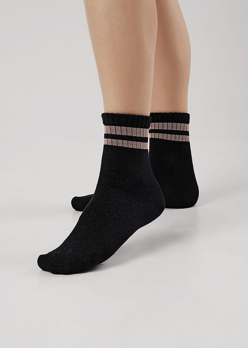 женские носки из вискозы с блеском в полоски на паголенке
