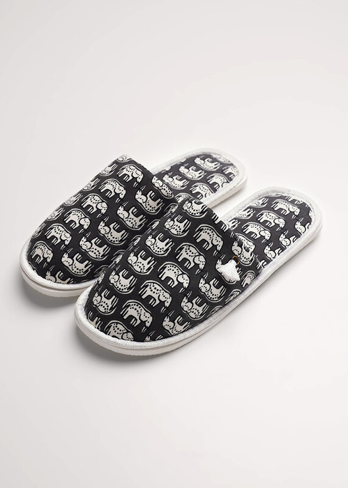 Лёгкие тапки для дома и отдыха с закрытым носом из хлопкового трикотажного полотна, нашивка. Толстая подошва.
