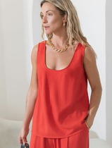21.04 Vilatte Свободный топ с U-вырезом изо льна с вискозой по косой D23.076 кор