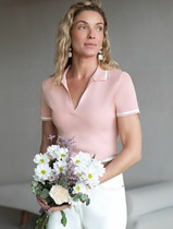 Vilatte Джемпер с воротником-поло с коротким рукавом тонкой вязки из вискозы D39