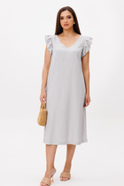 Платье полуприлегающего силуэта с вертикальными рельефами. Длина миди. Кокетка спереди и по спинке. Застёжка спереди на петли и пуговицы. Воротник рубашечный. Рукав прямой, понизу широкая манжета (8 см). Манжета с застёжкой на петли и пуговицы. В боковых швах карманы. Платье на подкладке. В комплекте съёмный ремень.