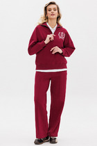 Брюки прямого свободного кроя с боковыми карманами из набивного трикотажа супрем.