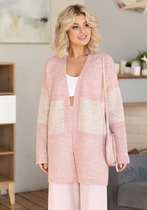Вязаный кардиган на пуговицах из шерсти с добавлением акрила. Ажурная вязка, манжеты и нижний край не растянутся благодаря вывязанной резинке.