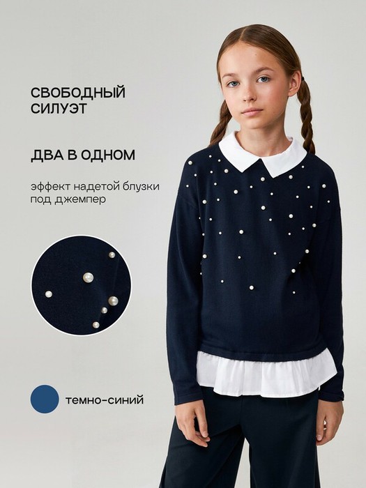 Совместные покупки Сургут Детская одежда Джемперы, свитеры — Акция по 20.01 Acoola Джемпер детский для девочек Nicolet 20240310041 темно-сини