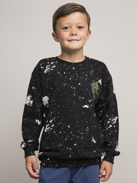 Стильный свитшот-пуловер для мальчика с космическим принтом. Классический черный свитшот из мягкого футера. Удобная модель с круглой горловиной и свободным кроем для активных движений.