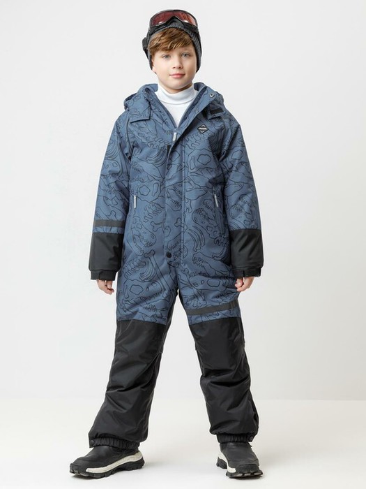 Зимний комбинезон для мальчика с утеплителем Fellex®: 250 г/м2 . Выполнен из мембранной ткани с дополнительной тефлоновой обработкой, которая предохраняет изделие от загрязнений и отталкивает влагу. Подклад выполнен из 100% полиэстера Tricot. Комбинезон застёгивается на молнию и внешнюю планку на липучках и кнопках, предусмотрена защита подбородка. Съёмный капюшон имеет эластичную утяжку со стопперами. Резинка по спинке обеспечивает лучшее прилегание. По бокам два кармана на молнии. Эластичные манжеты на рукавах регулируются по ширине с помощью липучки, по низу изделия - с помощью кнопки. Внутренняя противоснежная юбка защищает обувь от попадания снега и удерживает комбинезон в закреплённом положении. В размерах с 98-104 по 116-122  предусмотрены отстёгивающиеся штрипки. Во всех изделиях верхнего ассортимента для безопасности ребёнка предусмотрены светоотражающие элементы.