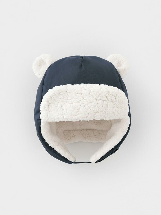 Зимняя шапка детская из однотонной мембранной ткани с декоративными ушками. Внутри искусственный утеплитель и подклад из мягкого длинноворсового флиса. Застёгивается под подбородком на липучку. Спереди отворот на липучке. На затылке эластичная резинка. Сбоку прикреплён светоотражатель.