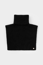 Двусторонний шарф из полушерсти с вывязанным рисунком в виде разновеликих полос. Длина - 200 см, ширина - 40 см. Связан гладью. Украшен тиснённым значком из металла и фирменной этикеткой на внутренней стороне.