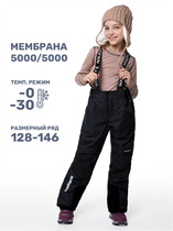 Брюки ФРИСТАЙЛ из мембранной ткани 5000/5000 с водо- грязеотталкивающей технологией TEFLON. Мембранная ткань — это непродуваемый и водонепроницаемый материал, который надежно защищает от ветра и влаги. Благодаря дышащим свойствам мембраны ребенку будет комфортно в любую погоду, и он не вспотеет. Ткань обработана снаружи экологически чистым протектором TEFLON для защиты от воды и грязи.Мембрана в сочетании с утеплителем нового поколения FIBERlite сохраняет тепло во время прогулок, позволяя телу дышать. Флисовая подкладка отводит влагу и имеет хорошие теплоизоляционные свойства. Удобные брюки защитят ребенка от ветра, снега и низких температур во время зимних прогулок.Функционал:• съемная спинка, • регулируемые бретели и дополнительная регулировка по талии, • удобные карманы,• флисовая подкладка до середины бедра.Мы все продумали до мелочей. Модель дополнительно оснащена:• снегозащитными муфтами по низу брюк, • регулировкой объема брюк под обувь на молнии,• светоотражающими элементами для безопасности ребенка в темное время суток.Область колен и шов сидения проклеены, места повышенного трения выполнены из особо прочной ткани.Комфортная температура эксплуатации от 0°С до -30°С. Рекомендуем приобрести комплектом аксессуары, обувь и другие вещи из капсулы в карточке товара, которые отлично сочетаются с изделиями коллекции.