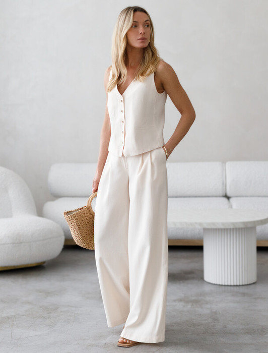 Акция Vilatte Брюки-палаццо из плотного лиоцелла D24.267 кокосово-молочный
