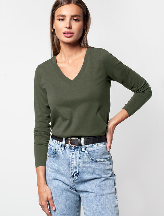Совместные покупки Сургут Женская одежда Джемперы, свитеры, водолазки — Акция Vilatte Джемпер из премиального хлопка с эластаном D49.958 темно-оливковы