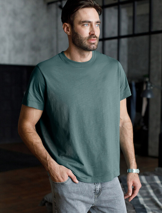 Совместные покупки Сургут Мужская одежда Футболки — Акция Vilatte Футболка из фактурного полотна из 100% хлопка U49.040 полынь