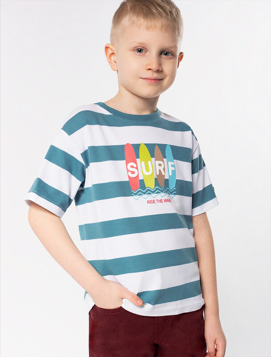 Совместные покупки Сургут Детская одежда Футболки, майки — Акция Vilatte Футболка из фактурного трикотажа с авторским принтом M49.407 морс