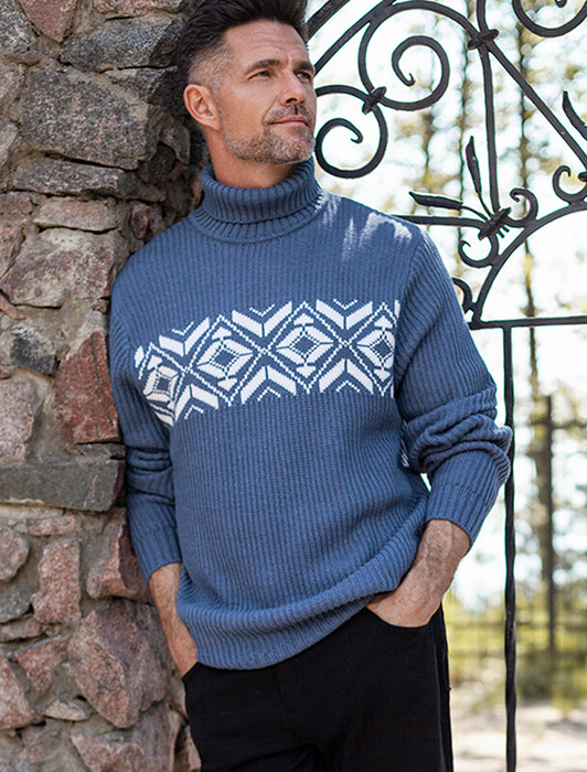 Свитер крупной фактурной вязки выполнен из мягкой хлопковой пряжи с акрилом. Теплая фактура изделия подчеркнута скандинавским узором. Длинный ворот защитит от ветреной погоды и поможет собрать, уютный комплект в расслабленном стиле в осенне-зимний период. Не препятствует циркуляции воздуха, но при этом хорошо сохраняет тепло и не колется, поэтому свитер комфортно носить даже на голое тело. Модель дополнена фирменным логотипом бренда.