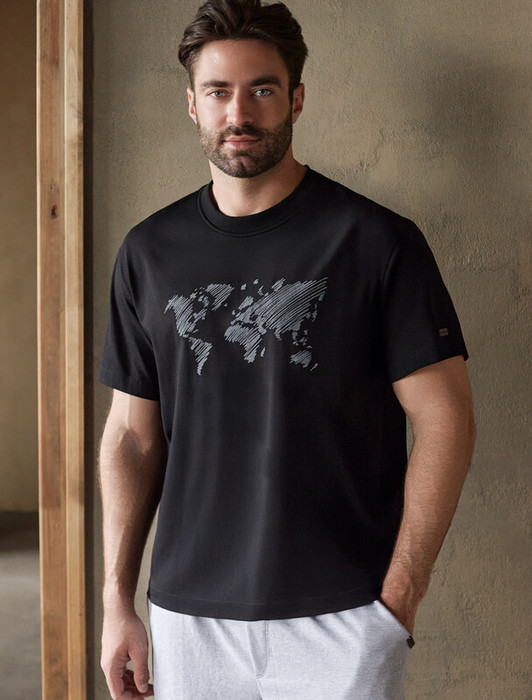 Совместные покупки Сургут Мужская одежда Футболки — Акция Vilatte Свободная футболка с авторским принтом U49.048 черный_карта