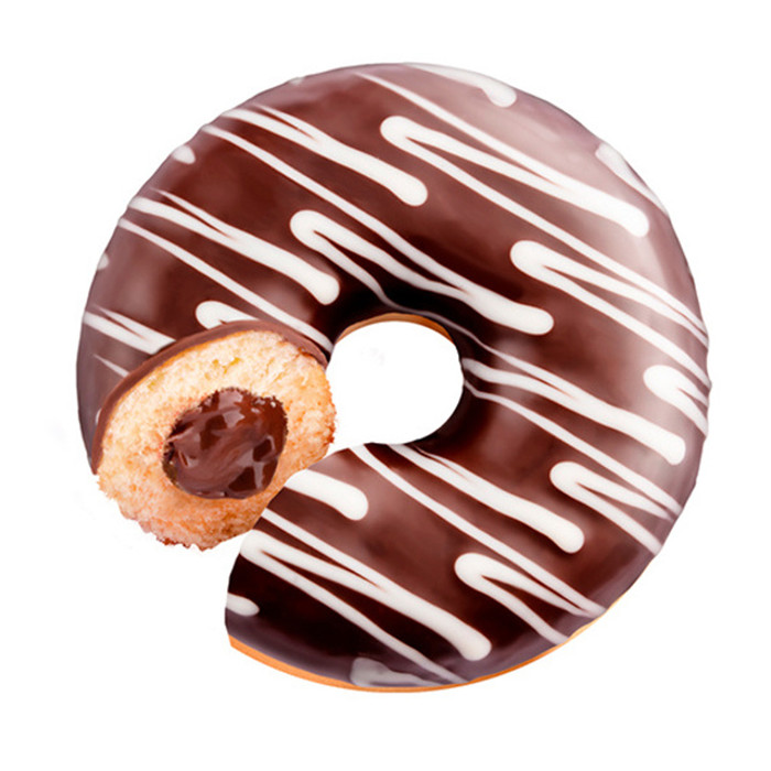 Совместные покупки Сургут Продукты Прочая заморозка — BAKERTON Пончик Донат Шоколадная начинка шоколадная глазурь и белые полоски