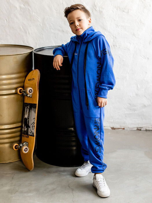 Комбинезон Элевен детский синий из футера. Комбинезон с капюшоном из плотного хлопкового трикотажа. Имеет застежку-молнию по центру и эластичные манжеты рукавов и брюк. Надписи на рукавах и брючинах. Глубокий капюшон с регулировкой объема хорошо прикрывает голову от ветра. Воротник-стойка для защиты шеи. Есть карманы.Характеристики:Ткань верха: футер трехнитка петля 60% хлопок, 40% полиэстерПроизводитель: batik