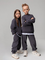 Комплект трикотажный свободного кроя в черной расцветке: джемпер и брюки-палаццо. Плоские швы, круглая горловины, разрезы по бокам. Детский и подростковый спортивный костюм из двухслойного трикотажа — идеальный вариант для активного отдыха и повседневной носки. Характеристики:Ткань верха: трикотаж двухслойный65% хлопок, 35% полиэстерПодклад: карманы супремПроизводитель: Batik
