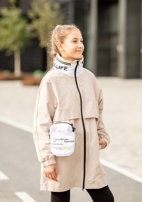 Плащ подростковый Юна для девушек - стильная неутепленная модель с надписями в модных расцветках. Легкий плащ ветровка из новой коллекции Батик подойдет на конец весны и лето. Особенности: Центральная застежка на молниюВоротник стойка и капюшонЯркая желтая неоновая отделка кантами и фурнитураБонус - небольшая съемная сумка на молнииТермотрансферыХарактеристики:Материал верха: C/N K409 / twill polyПодклад: T/C V-22Утеплитель: нетТемпературный режим: от +10 до +20 СРазмеры: 134-170Производитель: batik