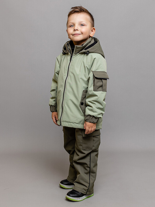 Универсальный демисезонный комплект для мальчика Марио с игровым термотрансфером на спинке в расцветке хаки. Для дополнительной защиты есть регулировки объема капюшона и по низу куртки. Спереди куртки прорезные карманы на молнии и накладной карман на рукаве. На полукомбинезоне регулируемые бретели и объемные накладные карманы в стиле карго.