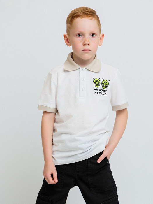 Футболка с коротким рукавом для мальчика белая с нашивкой на груди. Практичная и стильная футболка поло из ткани пике высокого качества подойдет для лета. Плотный трикотаж не просвечивает и комфортно сидит по фигуре, не стесняя движений.Характеристики:Материал: Пике 100% хлопокПроизводитель: batik
