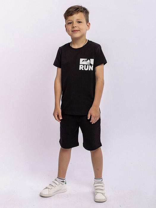 Футболка черная детская с коротким рукавом. Лаконичный принт с одной стороны груди.