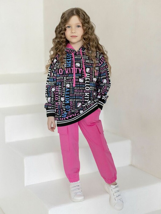 Худи для девочки из футера с длинными рукавами. Капюшон со шнурком, принт Хелло Китти, эластичные манжеты рукавов и низ.
