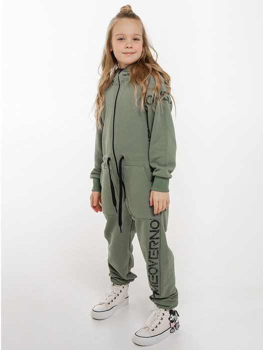 Комбинезон Флай из футера детский на молнии. Комбинезон с капюшоном выполнен из плотного футера для девочек и мальчиков. Манжеты рукавов и низ брючин на резинке. Есть карманы по бокам. Шнурок для утяжки по талии. Надписи по бокам и на рукавах.