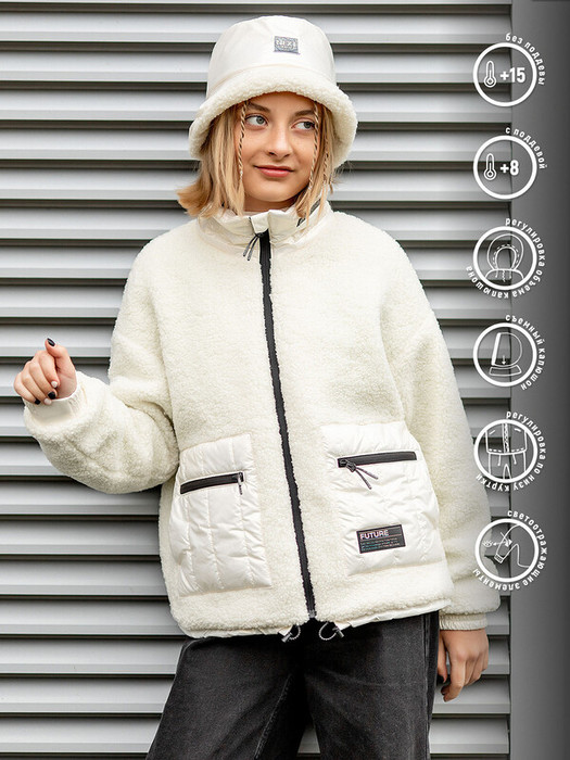 Куртка меховая для девочки Веста молочная без утеплителя. Куртка выполнена из плюшевого искусственного меха с мягким ворсом. Прямой крой, капюшон, застёжка на молнию, два кармана.