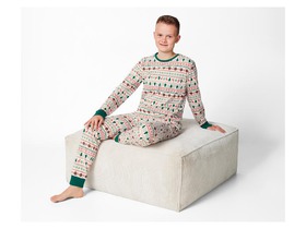 Пижама детская новогодняя из натурального хлопка. В комплект входит футболка с длинными рукавами и брюки.Особенности:Футболка серая с рисунком в виде тигра и надписейЭластичные манжеты рукавов и низаБрюки на резинке черныеХарактеристики:Материал: 92% хлопок, 8% эластанРазмеры: 134-164Производитель: batik
