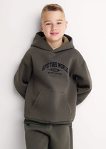 Свитшот для мальчика синий из футера. Принт с надписью спереди.