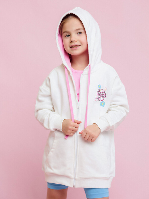 Толстовка для девочки белая с капюшоном из футера и розовым подкладом. Удлиненная трикотажная толстовка с рукавом на эластичной манжете. Есть боковые карманы и регулировочный шнурок в капюшоне. На груди небольшая надпись в стиле граффити.Характеристики:Ткань: Футер 3х нитка 90% хлопок 10% полиэстерПроизводитель: batik