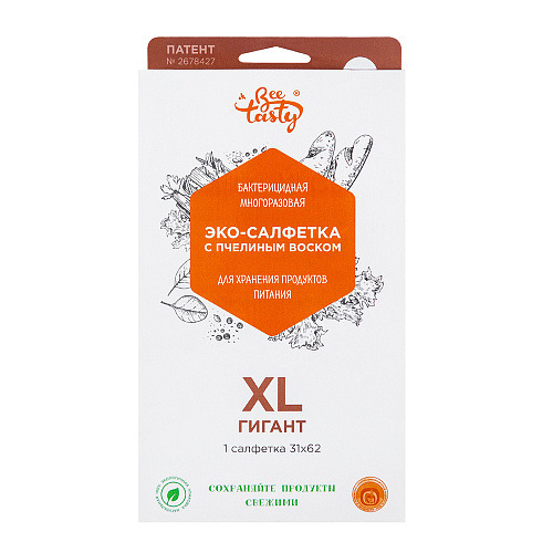Экосалфетки для хранения продуктов питания, с пчелиным воском, хлопчатобумажные, бактерицидные, многоразовые, дышащие, под торговой маркой Bee Tasty, 1 шт. размера XL (гигант 62х31 см.).