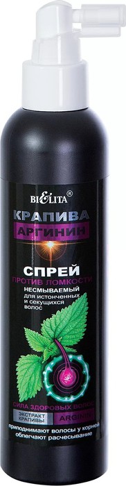 Благодаря уникальному сочетанию таких активных компонентов, как экстракт крапивы, молочная кислота и аргинин, продукт благотворно влияет на структуру проблемных волос, закрывая их верхний чешуйчатый слой, укрепляя и уплотняя по всей длине, питая волосяные луковицы и приподнимая у корней. Также спрей делает пряди более послушными, облегчая процесс их расчесывания.
